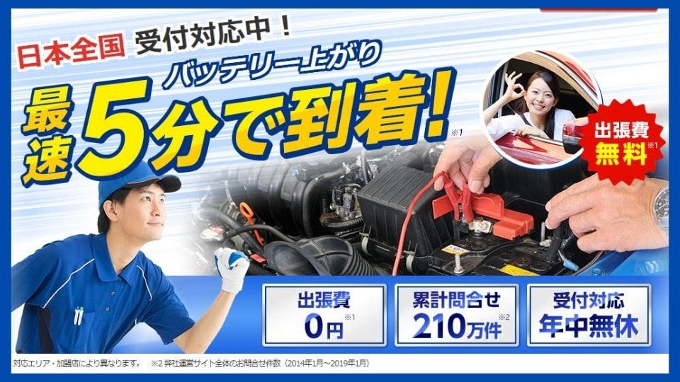 カーバッテリー110番は、「車のバッテリーが上がっててエンジンがかからない」そんな緊急事態にいち早く駆け付けられる業者を紹介するサービスです。